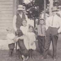 From David Moore. Probably pre-1918 at least as Muriel (Dot below) would have been 12 years old when Ethel was born. Wilf is on the left; unknown boy at right. D.W. Moore and brother, Armine Coleman Moore at right.