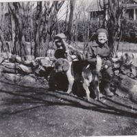 On a snowbank beside the original two-storey barn at Brook and Broad. This snowbank would have been on the sidewalk! Very few pictures of the barn appear to exist; the right wall faces Broad Street, the wooden sliding door on metal hanger was one of…