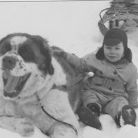 With Dolly and dogsled outside house at the park in Aylmer, QC.