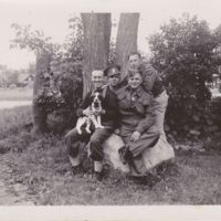 Roland with dog and three servicemen