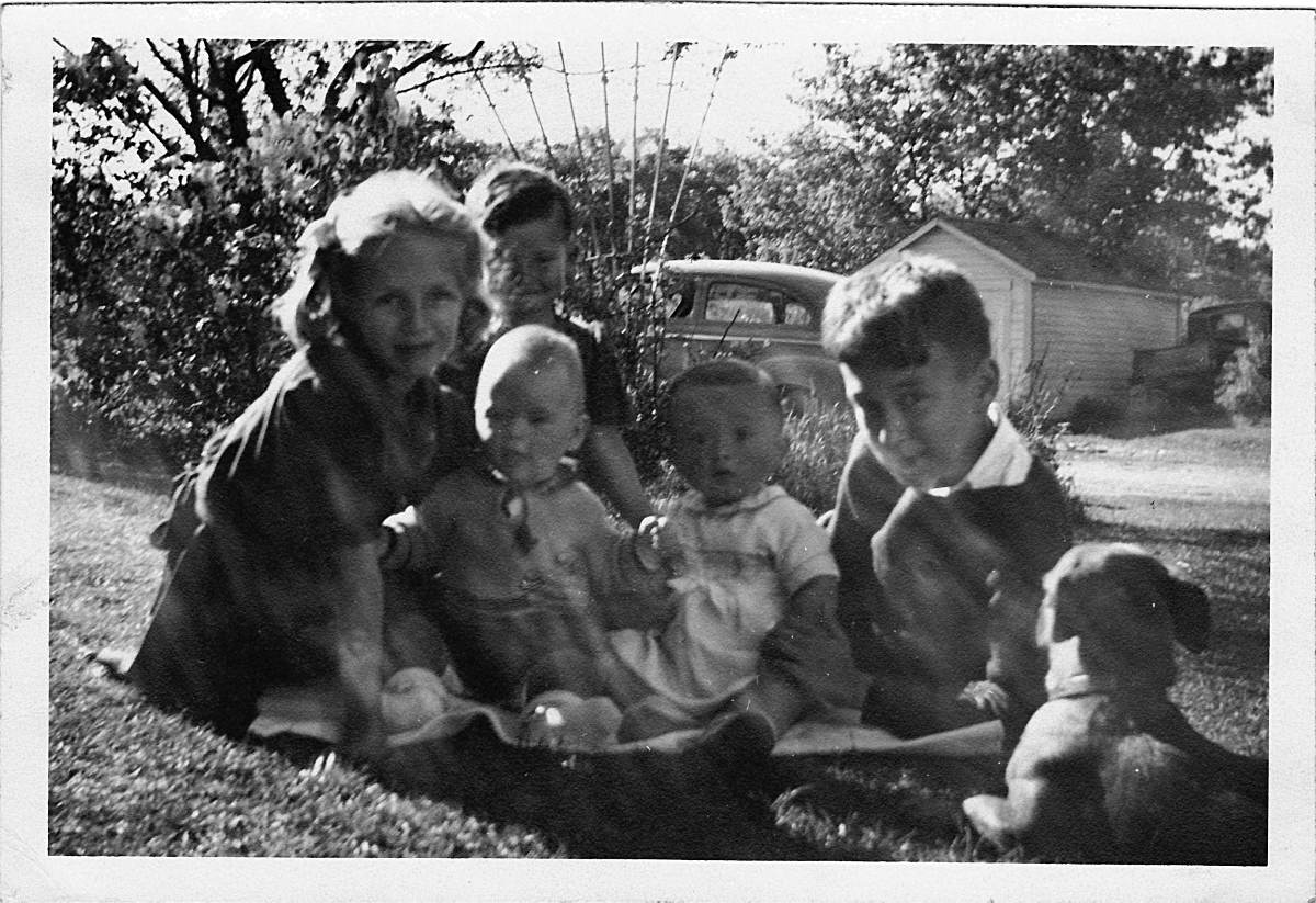 Moore cousins on side lawn at Mountain Street.