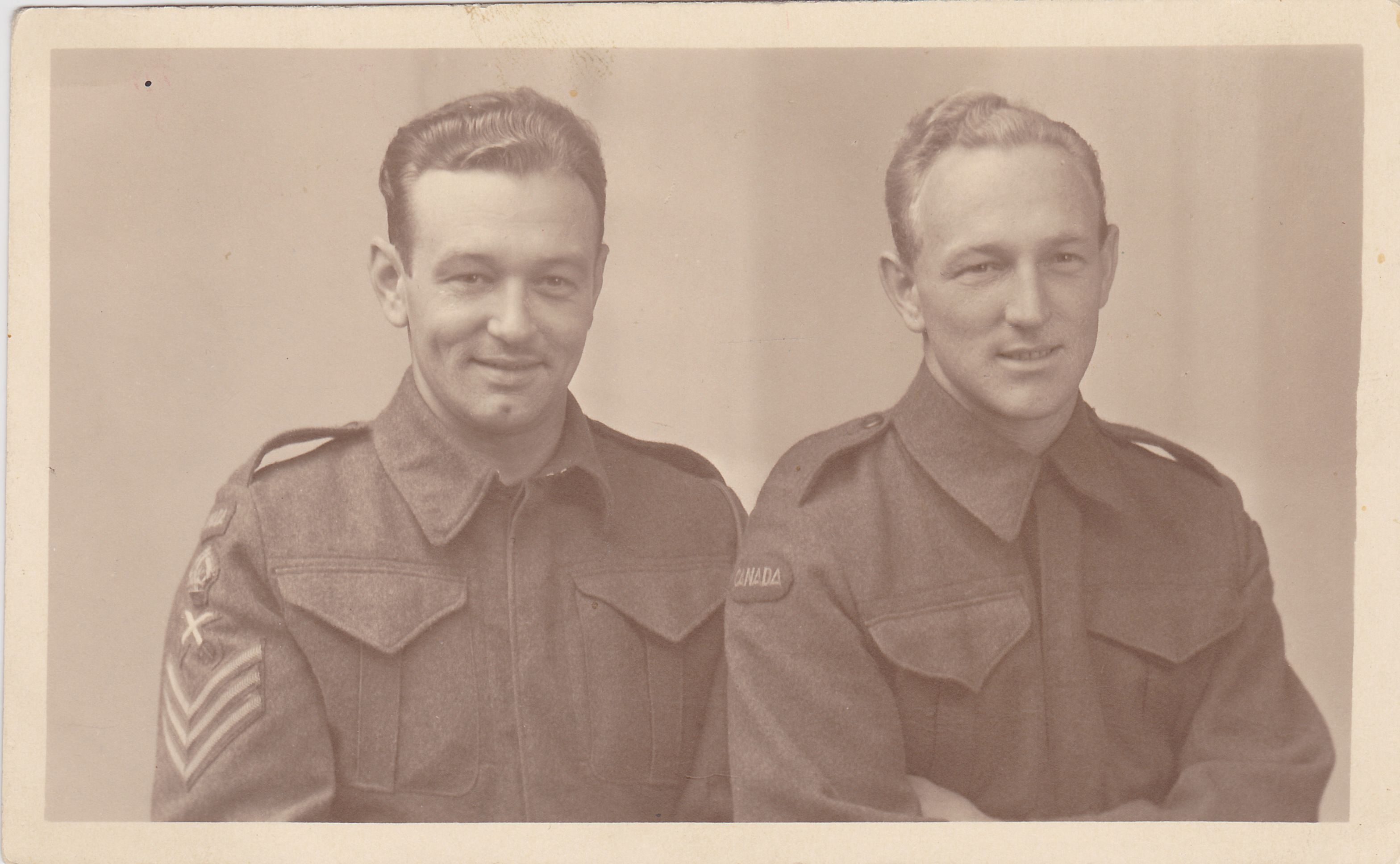 Back of photo states "Ernie & Bill Gurtain 1942 taken London England". Unedited Low res jpeg and edited one brought back from Facebook.