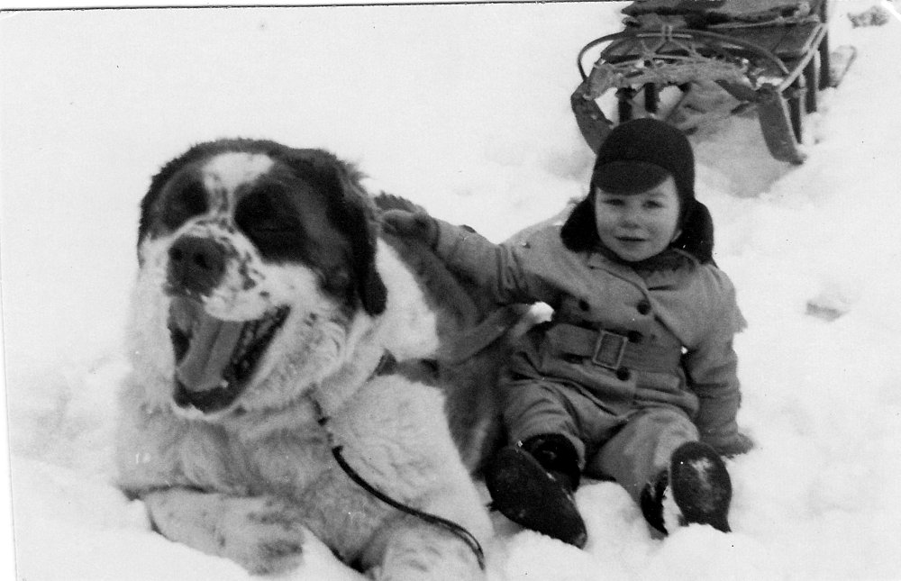 With Dolly and dogsled outside house at the park in Aylmer, QC.