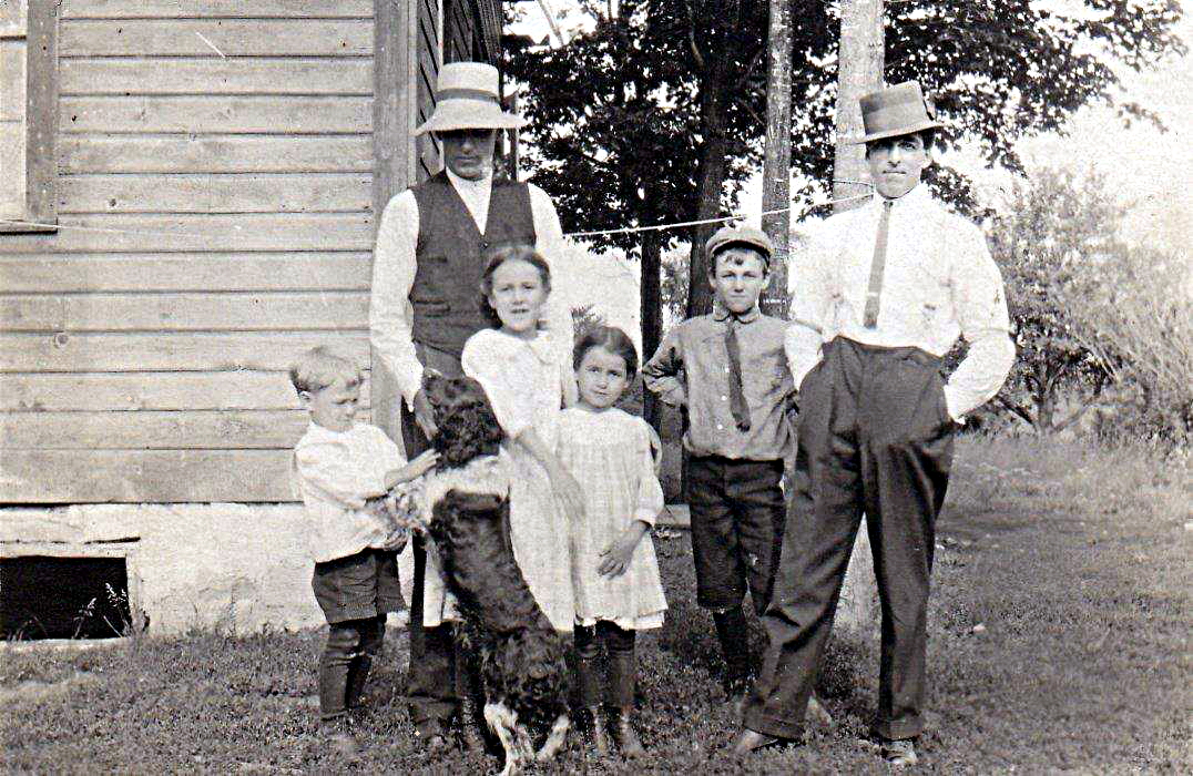 From David Moore. Probably pre-1918 at least as Muriel (Dot below) would have been 12 years old when Ethel was born. Wilf is on the left; unknown boy at right. D.W. Moore and brother, Armine Coleman Moore at right.