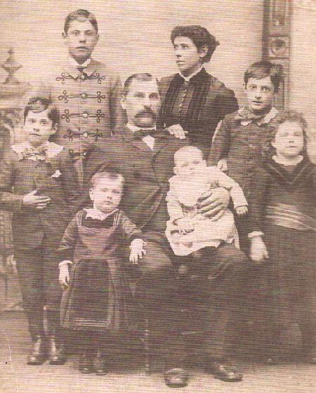 by Gary Guertin, showing his grandfather, and great-grandfather. Original Family Portrait, circa 1893 Detail of Napoleon. Detail of Elma/Alma. Detail of Euclid. Detail of Angelina. Detail of Leodore/Leodan. Detail of Dolphis. Detail of Joseph. Detail of Horace. (The one noted as "original" above is really a reworked one. The details are from the "real" original. - Dennis |