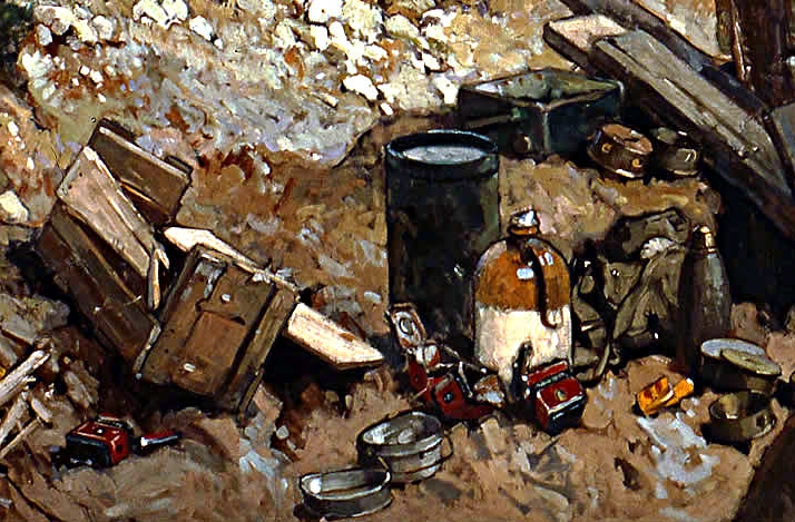 To give you all an indication of what I've done, I'll use just a small detail from the large full resolution image. Here's the ammo crate and trash in the centre foreground: